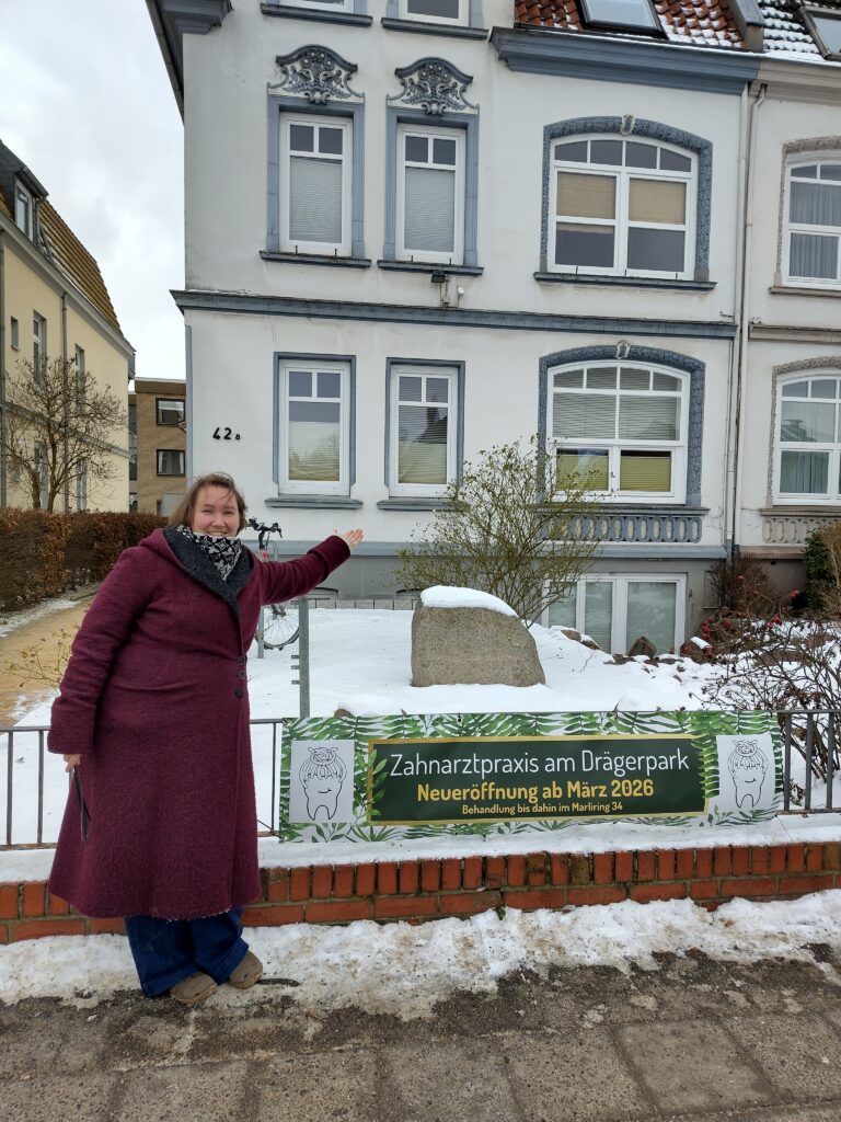Im Frühjahr 2026 werden wir in neue Räume auf Marli umziehen, da der Mietvertrag im Marliring durch den geplanten Abriss befristet war und jetzt ausläuft. Zum Glück haben wir neben neuen Räumen auch Teamzuwachs gefunden, der uns ab Januar auch in den alten Räumen unterstützen wird. Je nach Fortschritt der Umbauarbeiten werden wir voraussichtlich zwischen Ende Februar und März 2026 in die neue Praxis, vormals Frau Dr. Stein-Ziehfreund, Marlistraße 42a, 700m weiter Richtung Drägerpark umziehen, wir werden unseren Standort stets auf allen Kanälen aktuell halten und auch weiter unter unserer Telefonnummer, Homepage und Mailadresse erreichbar sein. Bitte haben Sie Verständnis für uns in unserer Umstrukturierungsphase und freuen Sie sich mit uns auf ein spannendes Neues Jahr!